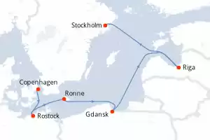 Itinerary : Copenhagen, Rostock, Ronne, Gdansk, Riga, Stockholm