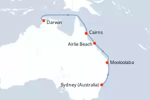 Itinerary : Sydney (Australia), Moolooba, Airlie Beach, Cairns, Darwin, Komodo, Benoa, Singapore
