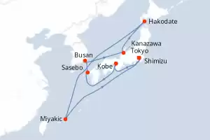 Itinerary : Tokyo, Shimizu, Kobe, Sasebo, Busan, Kanazawa, Hakodate, Miyakic, Tokyo