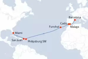 Itinerary : Miami, San Juan, Philippsburg, Funchal, Cadiz, Malaga, Barcelona