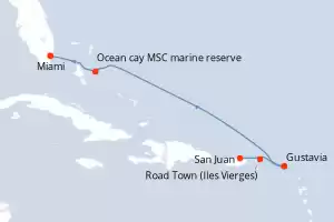 Itinerary : San Juan, Road Town, Gustavia, Frederiksted (US Virgin Islands), Ocean Cay MSC Marine Reserve, Miami