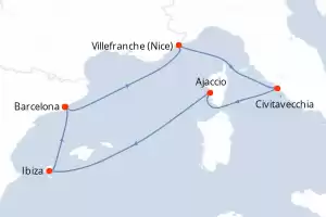 Itinerary : Barcelona, Villefranche, Civitavecchia / Rome, Ajaccio, Ibiza, Barcelona