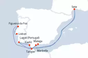 Itinerary : Malaga, Marbella, Tangier, Cadiz, Lagos (Portugal), Sete, Figueira da Foz, Lisbon