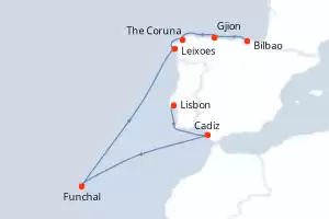 Itinerary : Lisbon, Cadiz, Funchal, Leixoes, The Coruna, Gjion, Bilbao