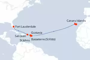Itinerary : Fort Lauderdale, San Juan, Gustavia, Basseterre (St Kitts), St Johns, Santa Cruz de la Palma, Santa Cruz de Tenerife, Canary Islands