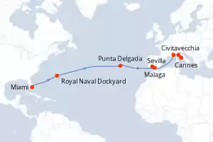 Itinerary : Miami, Royal Naval Dockyard, Punta Delgada, Sevilla, Malaga, Cannes, Florence/Pisa (Livorno), Civitavecchia / Rome