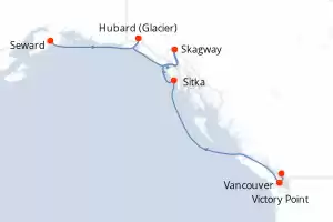 Itinerary : Vancouver, Victory Point, Sitka, Skagwy, Hubbard (glacier), Seward