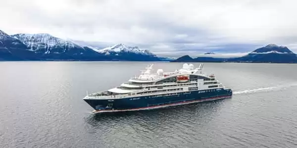 Its dimensions align with Ponant’s philosophy of offering intimate cruises that can reach destinations inaccessible to larger ships. Le Bellot carries only 184 passengers housed in 92 staterooms or suites spread across 4 of its 7 decks. A symbol of French luxury cruising, Le Bellot is ideal for travelers seeking elegance and exclusivity.