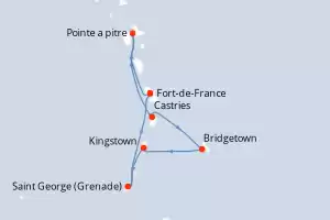 Itinerary : Fort-de-France, Pointe a pitre, Castries, Bridgetown, Kingstown, Grenada, Fort-de-France