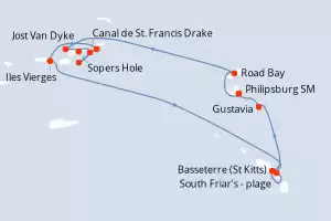 Itinerary : Philippsburg, Road Bay, Jost Van Dyke, Sopers Hole, St. Francis Drake Channel, Norman Island, Spanish Town, Virgin Islands, South Friar's - beach, Basseterre (St Kitts), Gustavia, Philippsburg