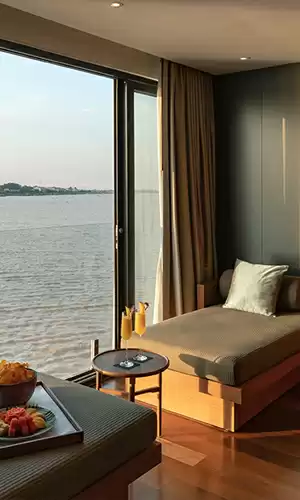 Suites aboard Aqua Expeditions ships, such as the Aqua Nera or Aqua Mekong, are designed to offer total privacy without ever breaking the visual connection with nature. Each suite is a design masterpiece, often decorated with high-end local craftsmanship. The flagship feature remains the immense glass walls that transform the room into a living cinema screen of the outside world. Featuring luxurious bathrooms, premium bedding, and, for some, private balconies, these suites guarantee absolute rest along the water, in discreet and warm luxury.