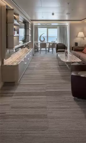 The smallest suites measure between 33 and 37 square meters. For the ultimate in comfort, the Silver, Royal, Grand Suite and Owner's suites are ideal, ranging from 104 to 137 square meters.