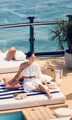 On board, the experience goes beyond accommodations and dining. Guests also enjoy a The Ritz-Carlton spa, wellness spaces, elegant relaxation areas, and facilities designed to fully embrace life by the sea. One of the collection’s signature features is its aft marina, which provides direct access to the water in certain ports or when the yacht is at anchor, allowing guests to enjoy watersports such as paddleboarding, kayaking, snorkeling, or swimming. This closeness to the sea enhances the exclusive yet relaxed character of the voyage, in a spirit of chic, contemporary resort living.