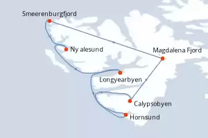 Itinerary : Longyearbyen, Hornsund, Calypsobyen, Magdalena Fjord, Smeerenburgfjord, Ny alesund, Longyearbyen