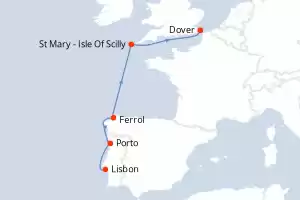 Itinerary : Lisbon, Porto, Ferrol, St Mary - Isle Of Scilly, Dover
